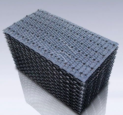 3、把新包裝放滿。黏附冷卻塔填料,并確保填料在粘接劑凝結(jié)的間隔時間內(nèi),確保填料點接觸在同一水準表面,確保填料點接觸在抑Z制全過程中支承勻稱、密不可分。